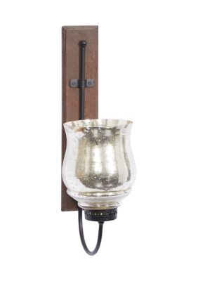 4 pendant sconce white ivory hanging candle holder wall decor. Ridge road décor fleur de lis swag lantern iron/glass candle sconce in bronze. Ridge road décor traditional iron wall sconce with mirror in brown. Constructed from iron and glass and measures 31 inches high x 8 inches wide x 8 inches deep. 5 out of 5 stars. Ecworld enterprises 7705337 antique replica rusted wall sconce candle holder. Oak and fused glass tea light candle wall sconce fusylou 5 out of 5 stars (5) £ 30.00 free. An extended platform gives you a space to light a candle and add a warm glow to the room. The glass insert holds a single candle. Large hurricane candle sconce in antiqued bronze finish. 5 out of 5 stars. Rated 4.5 out of 5 stars. Uttermost 19150 bronze joselyn candle wall sconce with glass globe.